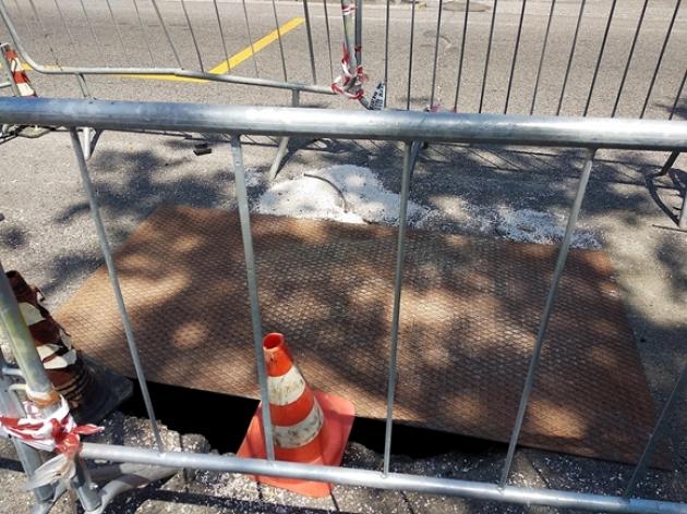 Il cedimento ha creato una crepa di circa due metri per tre lungo la strada, in entrambe le corsie di circolazione.
