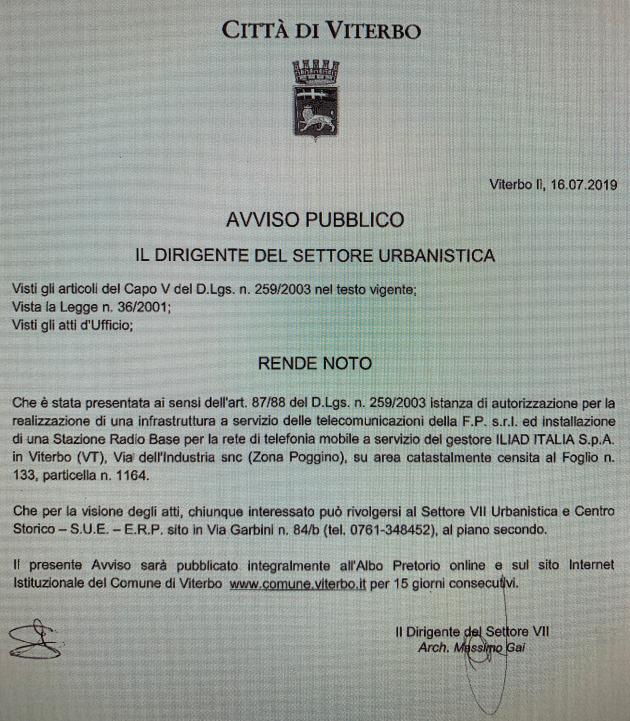 Proprio in quest’ottica si legge la richiesta inoltrata al Comune di Viterbo e pubblicata online sull’albo pretorio in data 18 Luglio. Come è possibile leggere nel documento, quella di Iliad è un’istanza di autorizzazione per la realizzazione di una stazione radio base per la sua rete mobile, in via dell’Industria, zona Poggino.